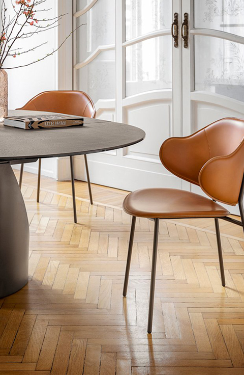 L'inspiration Calligaris des « années 50 » se poursuit avec la nouvelle famille HOLLY : la chaise est caractérisée par une structure métallique à l'esprit vintage. Le modèle HOLLY se distingue par un dossier enveloppant, rembourré et aux dimensions généreuses qui qui permet de reposer les bras confortablement comme sur une chaise à accoudoirs.