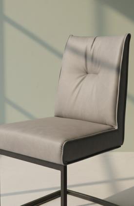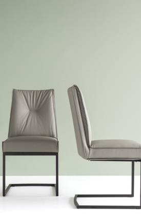 Moderne et polyvalente, ROMY est une chaise rembourrée dotée d’un piètement cantilever en métal. L’assise, rembourrée et extrêmement moelleuse, comprend une structure intérieure pourvue de sangles élastiques garantissant un confort maximal. Les accoudoirs sont rembourrés, revêtus et assortis à l’assise. Confortable et élégante, elle s’intègre avec désinvolture dans la salle à manger de la maison. Choisissez votre préférée.