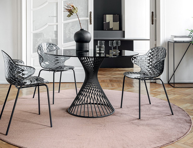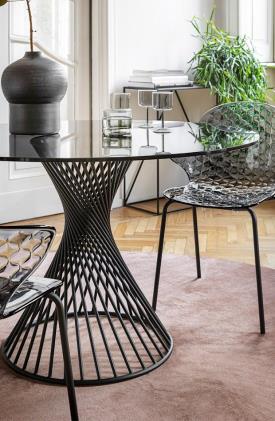 C’est l’esprit créatif, au carrefour entre design et fonctionnalité, qui distingue la chaise SAINT TROPEZ, dont les caractéristiques essentielles sont le soin du détail et le design recherché et décoratif avec la réalisation d’un dossier à effet capitonnage. Empilable et réalisée dans différentes tonalités transparentes ou couvrantes, la coque en polycarbonate est montée sur un piètement à 4 pieds en métal. Choisissez votre préférée.