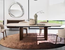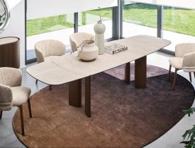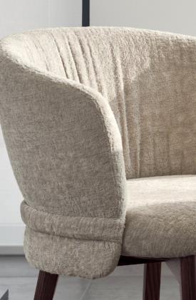Vanilla est une chaise qui, par ses proportions et son confort. Inspirée du monde de la mode, elle se distingue par ses plis particuliers du tissu et l’élément horizontal qui entoure le dossier comme une ceinture. Les pieds en bois ou en métal soulignent son élégance innée.