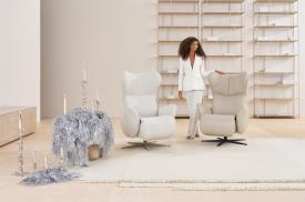 Himolla Un design iconique avec du potentiel Dimensions : l 77 x h 114/.../130 x p 87/.../180 cm L'EASYSWING 7589 est une réinterprétation moderne du fauteuil à oreilles classique, généralement équipé d'éléments latéraux au ras du sol et dépourvu de fonctions. Détaché de cette idée conservatrice, mais inspiré par les éléments de forme, un tout nouveau design iconique a vu le jour - moderne, avec des formes organiques ludiques et une légèreté qui laisse à peine deviner la multitude de fonctions. Les belles choses rendent tout simplement la vie meilleure, procurent des sentiments de bonheur et des moments de plaisir. EASYSWING 7589 n'a pas seulement le potentiel pour devenir un objet personnel préféré, il a ce petit quelque chose en plus, une sorte de charme qui entoure de nombreux classiques du design comme l'odeur d'un parfum. Mais ses valeurs intérieures sont également convaincantes : le fauteuil fonctionnel enthousiasme par ses fonctions techniques et manuelles qui augmentent encore le confort, permettent une utilisation flexible et complètent l'ensemble de manière réussie. EASYSWING 7589 offre également toutes les facettes de l'individualité. Le fauteuil est disponible en sept tailles, trois duretés d'assise et six versions techniques. Le chauffage de l'assise et du dossier en option ou la fonction de massage par chambre à air apportent un confort supplémentaire. Six piètements attrayants sont disponibles, le pied en étoile en beige moderne étant un point fort particulier. Le matériau de revêtement peut également être choisi librement, himolla propose une grande collection avec de nombreux tissus et cuirs aux haptiques passionnantes et une large palette de couleurs. Equipement fauteuil de relaxation avec repose-jambes intégré et dossier réglable 7 tailles : S-M-L-XL -MAXI MEDIUM - MAXI LARGE -MAXI EXTRA LARGE 6 variantes de fonctions : manuelles ou électriques (1,2 resp. 3 moteurs avec ou sans releveur) 6 piétements : 3 pieds en étoile et 3 types de soubassement 3 duretés d'assise : Superlastic soft, - med, - plus à ressorts Réglage de l'angle d'inclinaison de l'appuie-tête Réglage séparé du dossier et du repose-jambes Pivotant à 360° Hauteurs d'assise : 44, 46, 50, 52 cm Profondeurs d'assise : 52, 54, 56, 58 cm Largeurs d'assise : 50 cm fauteuil relax et relaxation
