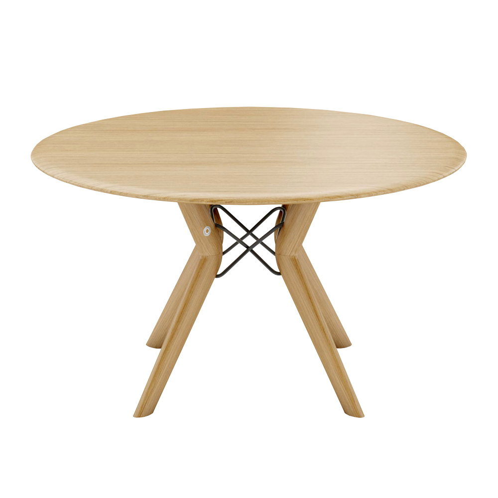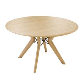 D’un diamètre de 135 ou 160 cm, cette table ronde au plateau en chêne massif peut accueillir de 4 à 8 convives. Son piétement est renforcé par une structure métallique, personnalisable en différents coloris.
