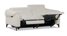Mécanismes : toutes les versions fixes sont équipées d'un appui-tête réglable manuellement. Les versions relax électriques sont dotées d'un mécanisme de relaxation électrique actionné par un panneau de commande situé sur le côté du fauteuil pour les versions avec accoudoirs et sur le côté de l'assise pour les versions sans accoudoirs (PUL M3). L'appui-tête peut être relevé manuellement. Les versions ELECTRIC COMFORT RECLINER sont équipées d'un appui-tête motorisé, d'un soutien lombaire réglable et d'un mécanisme d'inclinaison. Tous les mouvements sont commandés indépendamment par un panneau de commande situé sur le côté de l'accoudoir et sur le côté de l'assise pour les versions sans accoudoirs (PUL M5). La hauteur maximale du modèle avec l'appui-tête relevé est de 102 cm, tandis que la profondeur maximale du fauteuil déplié est de 167 cm.